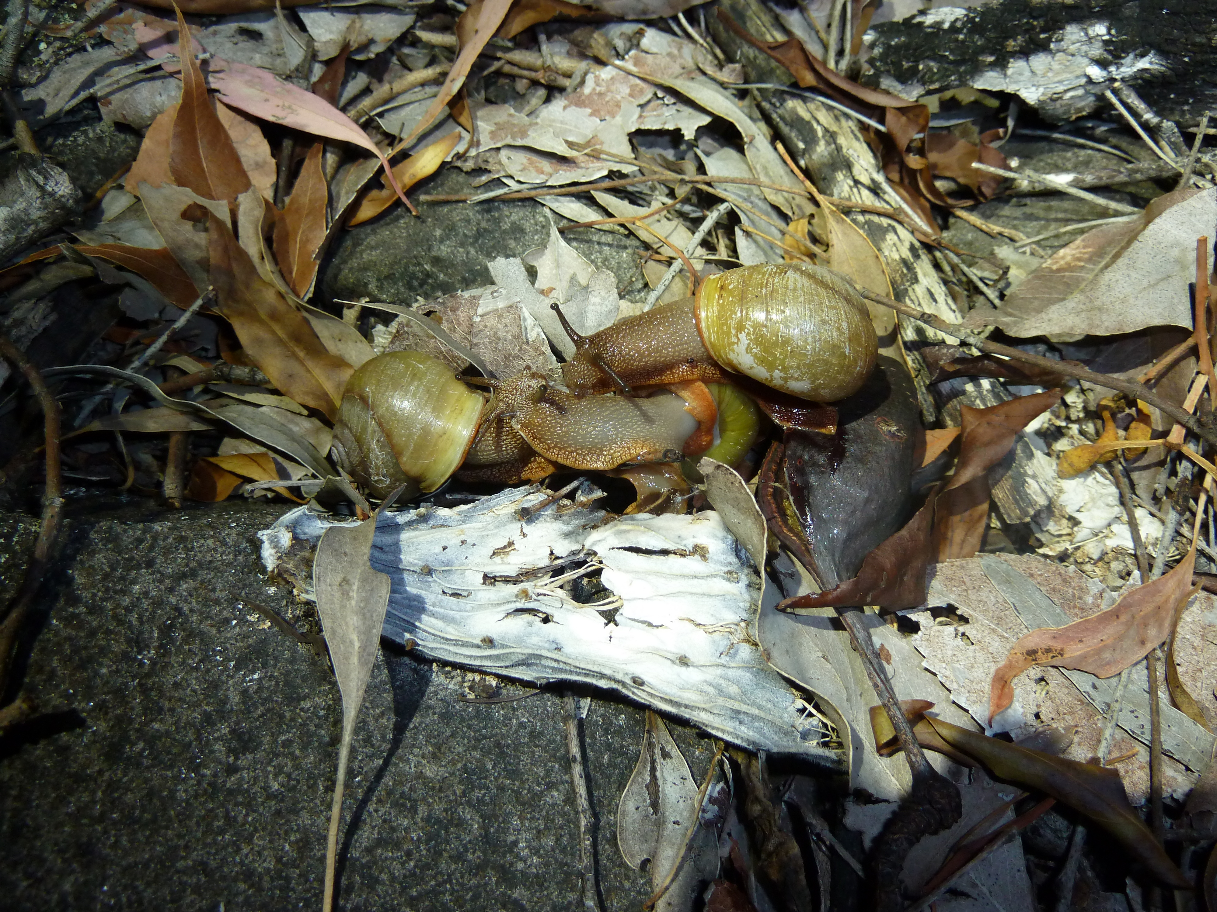 Most land snails [Pulmonates] are hermaphrodites which means they have both male and female reproductive organs. They fertilise each another and then lay eggs.